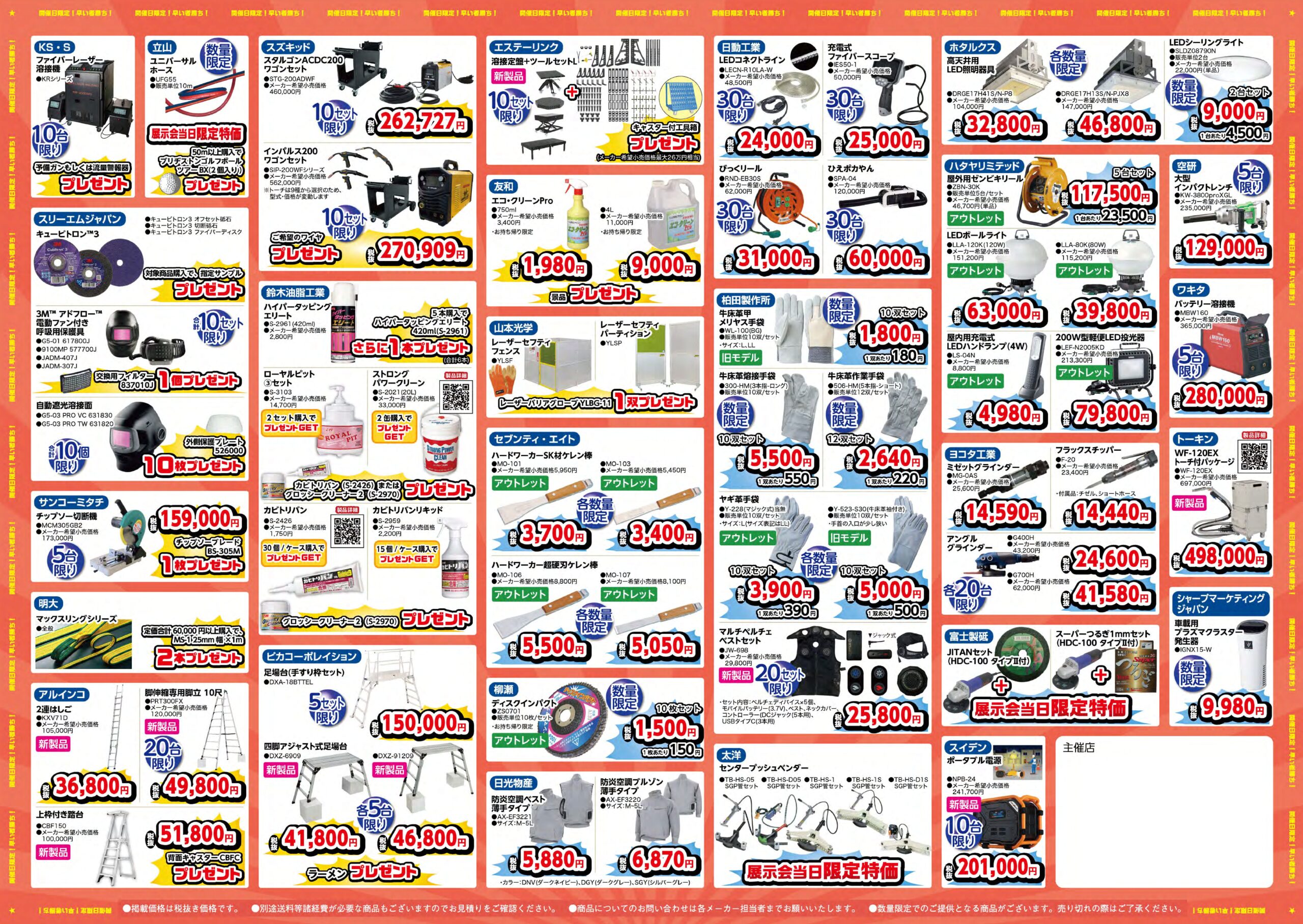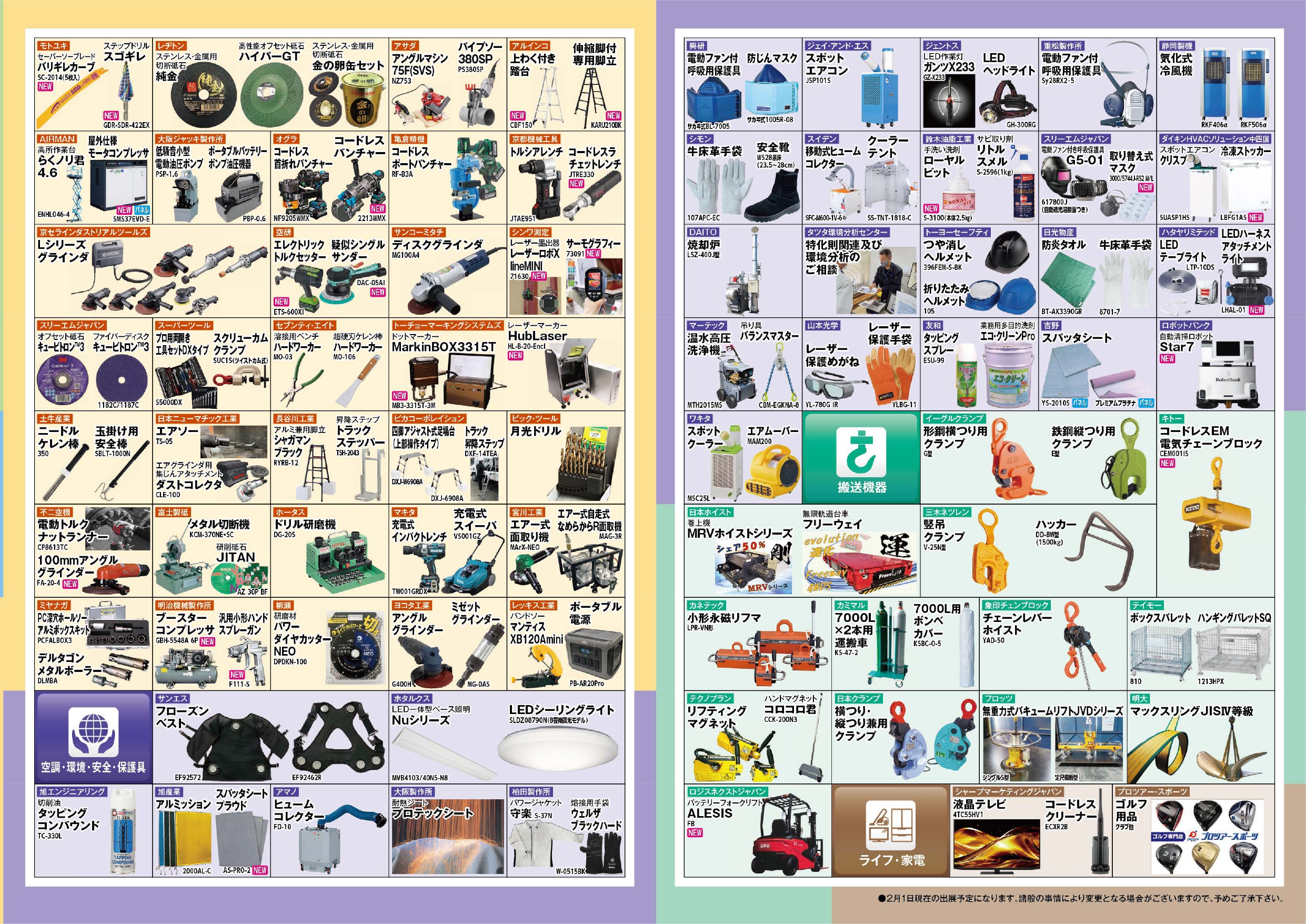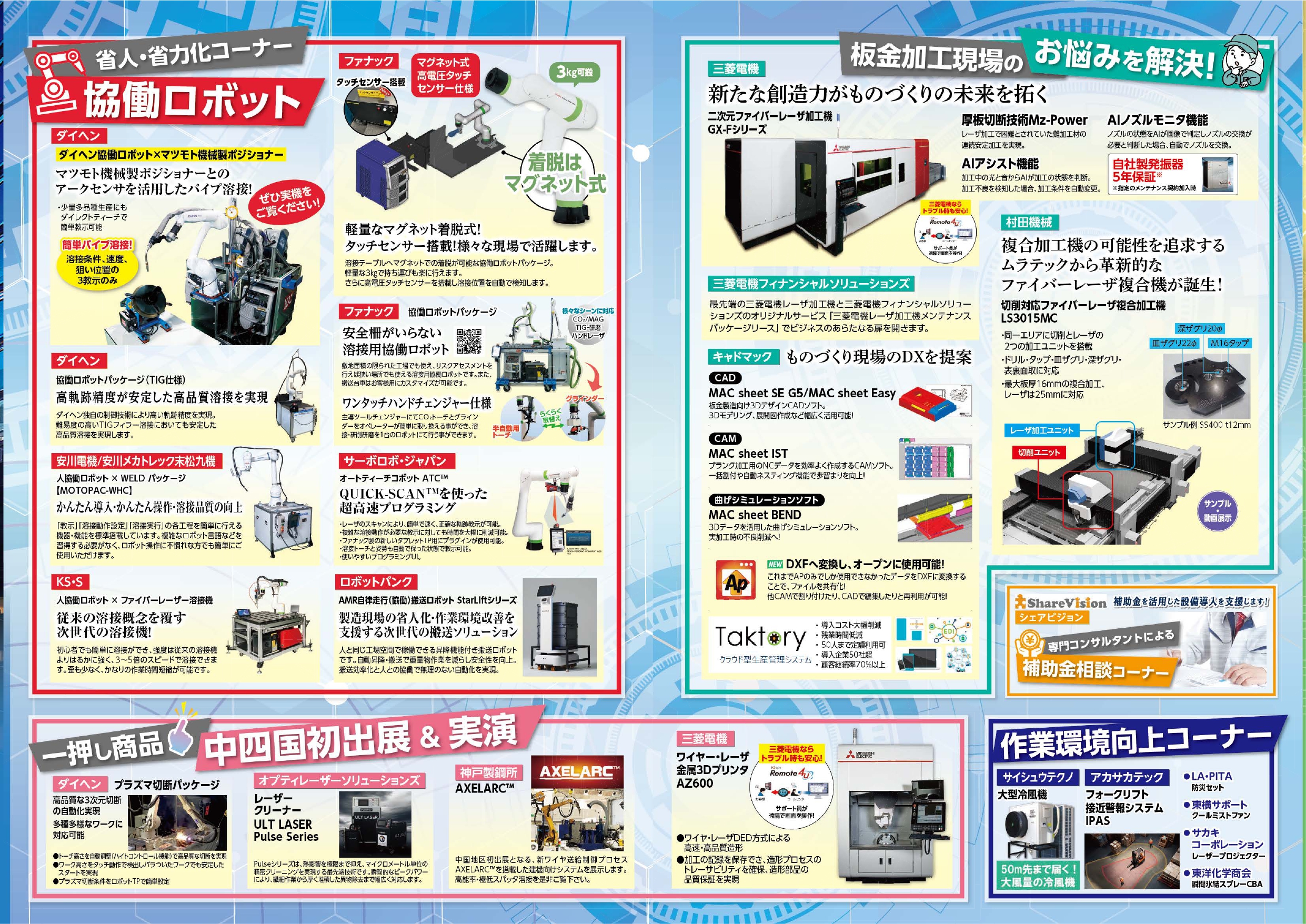 ロボット溶接機・溶接材料・搬送機器・金属加工機・作業用工具はもちろん、生活家電や空調など非常に幅広い分野のメーカー様が出店予定となっております。