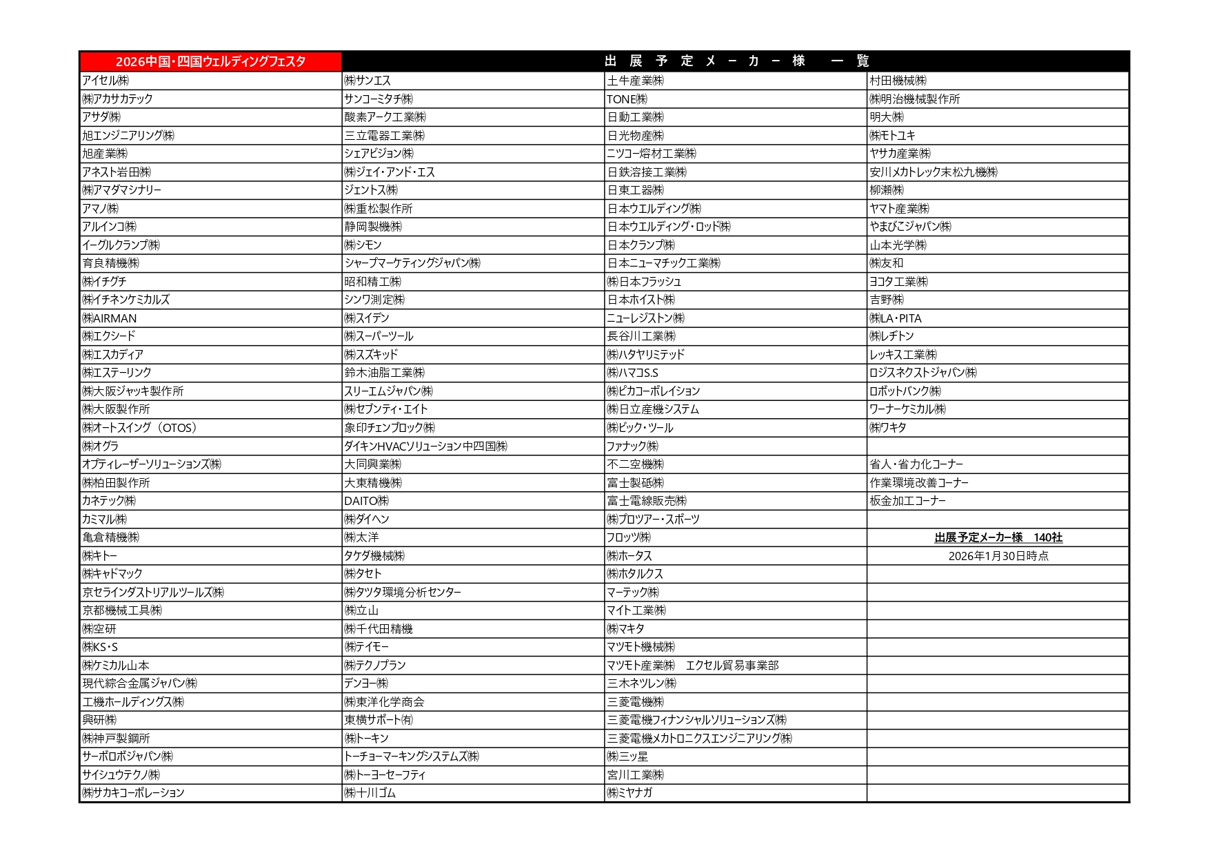 出展メーカー一覧
